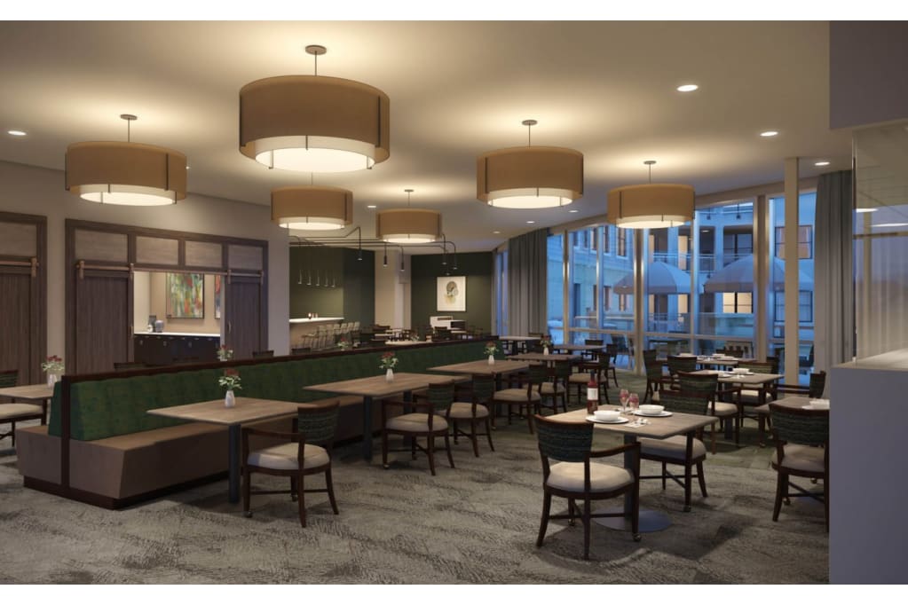 Enjoy three delectable dishes in the dining room with views of culinary flourishes from the display kitchen, or host private dinners in a dedicated event space. Residents can choose from multiple menu options at every meal with dishes inspired by their tastes.
