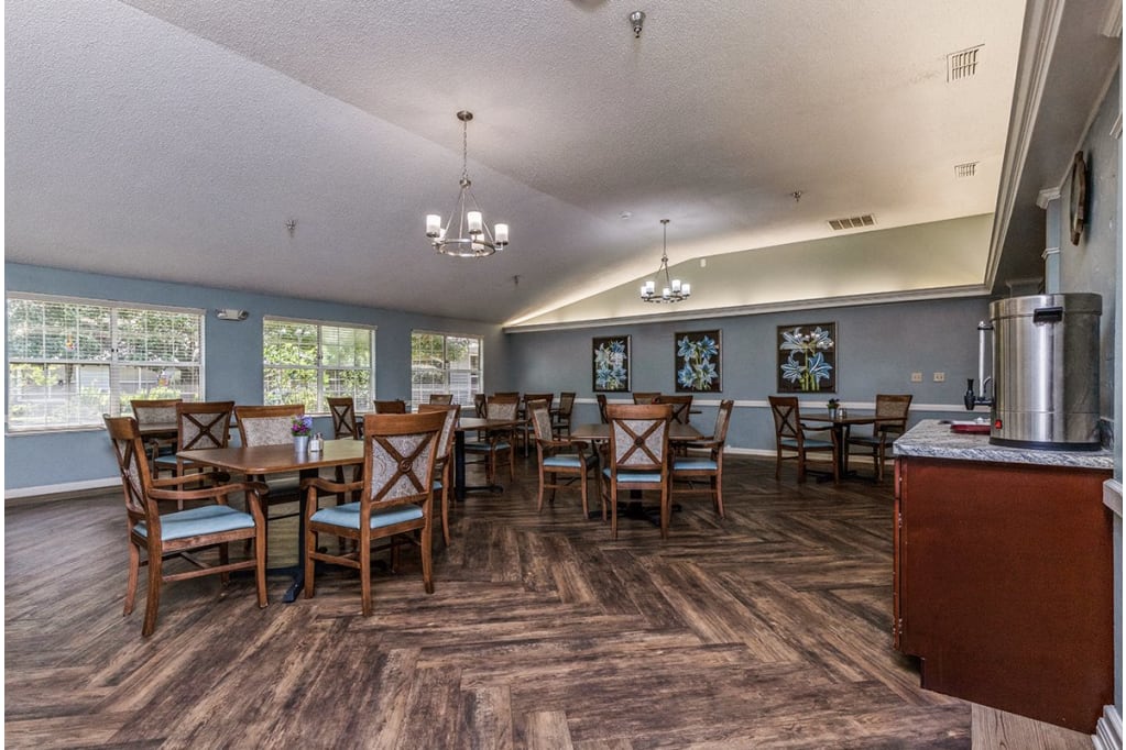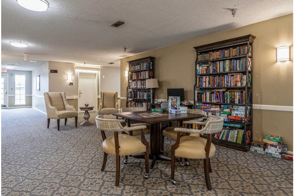 Common living areas including wide open spaces and sunny lounges that are perfect for chatting with friends over a game of cards. Amenities include a library, hair salon, restaurant style dining room and a computer area. The entire community, including outdoors, is wheelchair and walker friendly.
