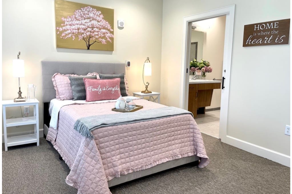 Professionally trained memory caregivers are available 24/7 to provide ambulatory and diabetic care and medication management. The staff offer on-site rehabilitation therapies including physical, occupational, and speech therapy, in addition to holistic services like counseling, support groups, and yoga. Hospice services can also be provided. Safety and security are paramount here, with a secured outdoor courtyard and emergency call buttons in each home.