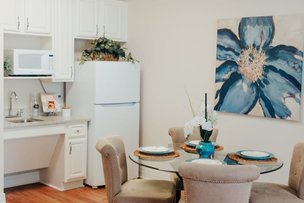 Our studio, one-bedroom, and two-bedroom apartments come in a variety of floor plans to suit you or your loved one’s space and style preferences. Each floor plan may come with full kitchens or kitchenettes, private climate control, and personal TVs.