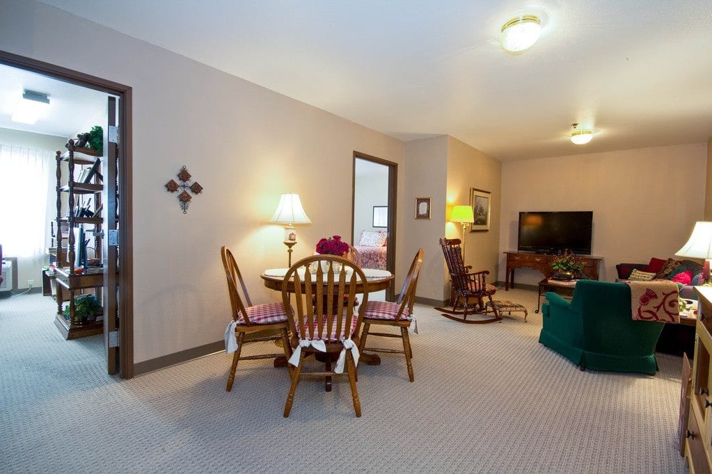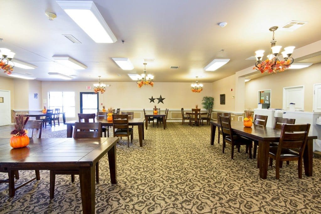 Compassionate caregivers are on-site 24 hours a day to provide personal care, medication management, and assistance with daily living activities. Physical therapy is offered on-site, and other services, including podiatry and dentistry, are also available — thanks to local professionals stopping by the community regularly. Caregivers provide personal assessments to help ensure that every resident continues to receive the appropriate services even if their needs change over time.