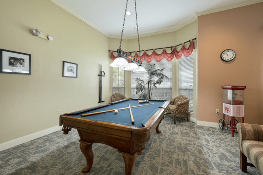 Between the available amenities and activities, residents at Trinity Oaks of Pearland can live a stimulating and luxurious lifestyle. The community has indoor and outdoor common areas, from a beautifully landscaped courtyard to spacious, homelike living rooms. In these common areas, residents can participate in a wide range of activities, such as religious services, exercises, community outings, cooking classes, billiards, shuffleboard games, and more. Residents can also sit together in the restaurant-style dining room while they enjoy chef-prepared and dietician-approved meals.