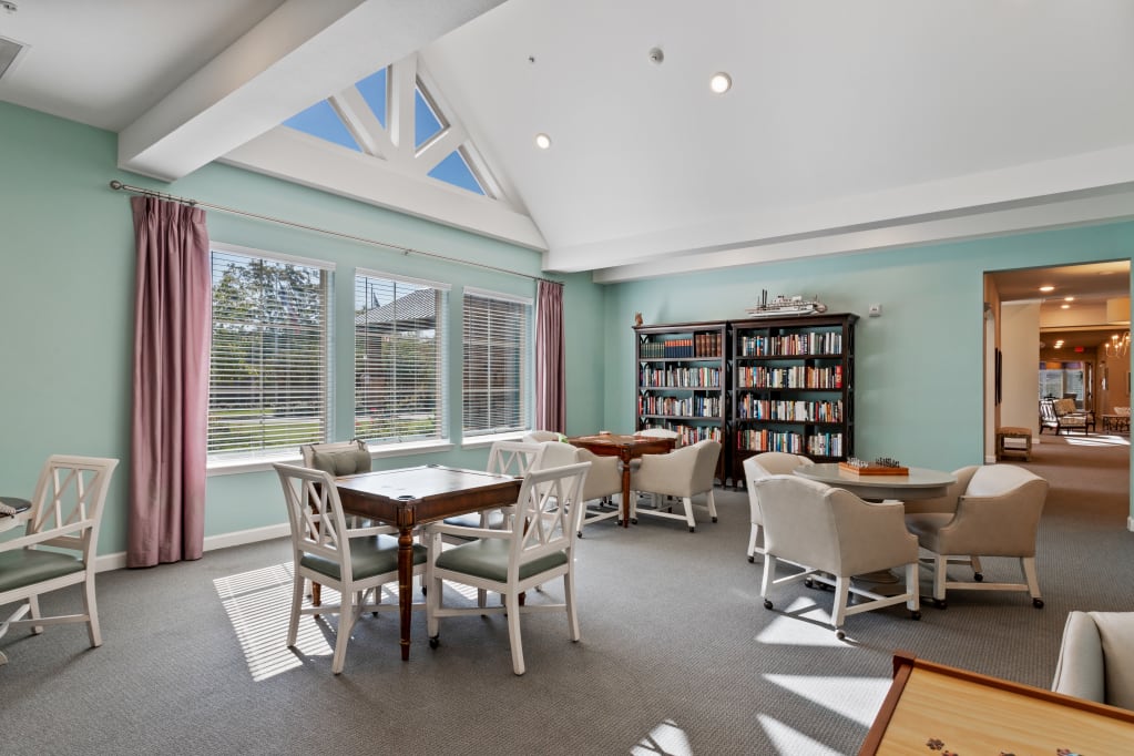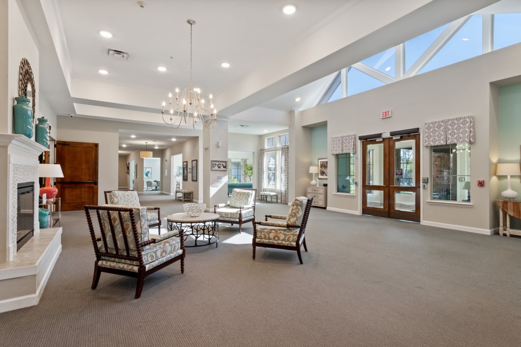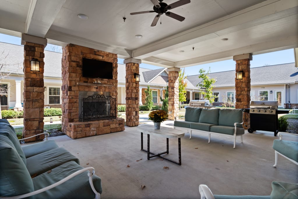 At Wood Glen Court, residents can participate in activities designed for a wide range of preferences, whether it’s group exercise classes in the fitness center, organized shopping trips to a nearby antique mall, card game nights, or book clubs. For some fresh air, they can gather on the covered patio, which includes a fireplace, grilling station, and TV. Or, take a stroll through the beautifully landscaped courtyard.